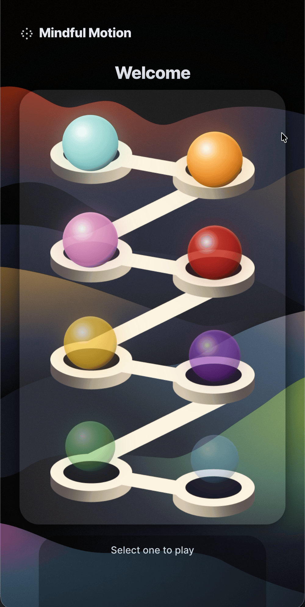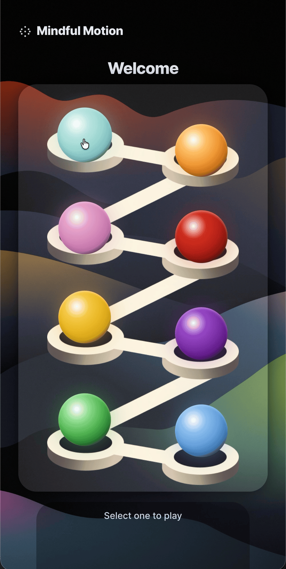 Many breathing techniques rely on written instructions or audio cues. My Mindful Motion app explores how simple interactive games could turn guided breathing into a playful, embodied experience; By giving users a visual rhythm to follow to make breathing exercises easier to understand.